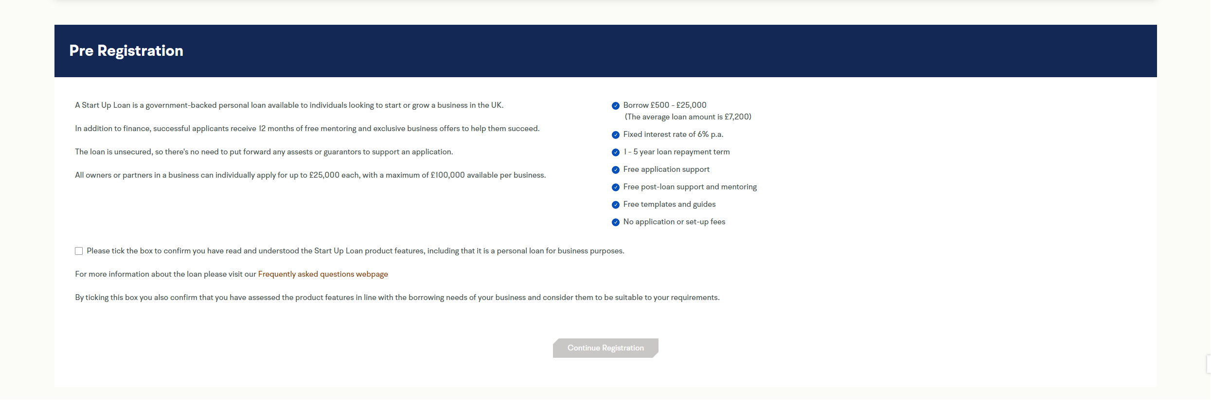 This is the pre-registration page to explain to you what a start-up loan is, how much each director can take individually and the main positive points of taking a start-up loan.