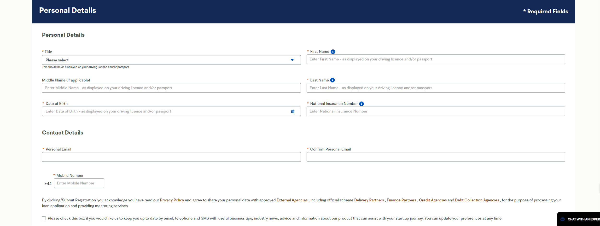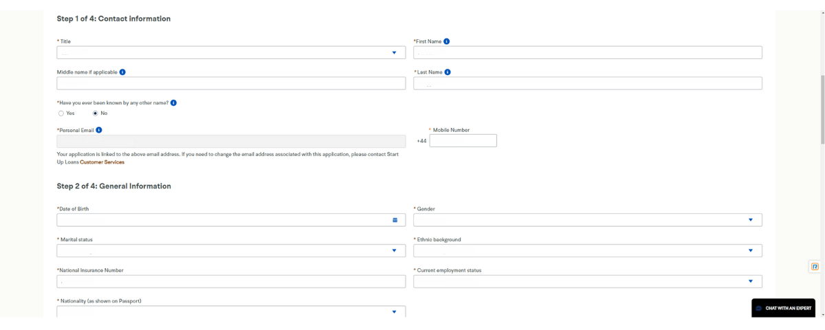 This is to confirm the contact details that you previously entered. And also to take some more general details about you as a person such as Date of Birth, Gender, Martial Status, National Insurance Number and Current Employment Status.